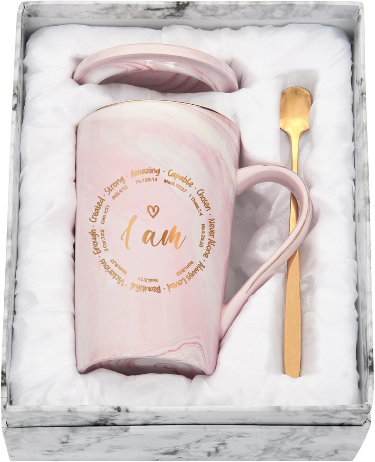 Joymaking Inspirational Christian Gifts: Coffee Mugs with Bible Verse, Spiritual Birthday Gifts for Women, 14 Oz Pink