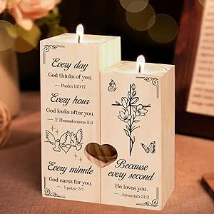Christian Gifts – Christ Candlestick – Inspirational Religious Gifts for Women & Men – Heart-Shaped Candle Desk Decoration – Baptism & Catholic Gift