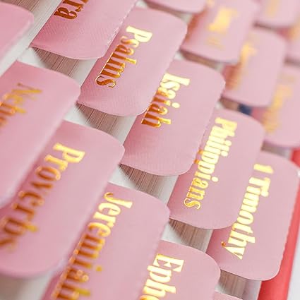 VANRA Bible Tabs for Women Study Bible Journaling Supplies Large Print, 96 Tabs Old and New Testament Studying with Blank Laminated Bible Tabs Pink(Gold Foil Letters, 1.53×1.26 in)