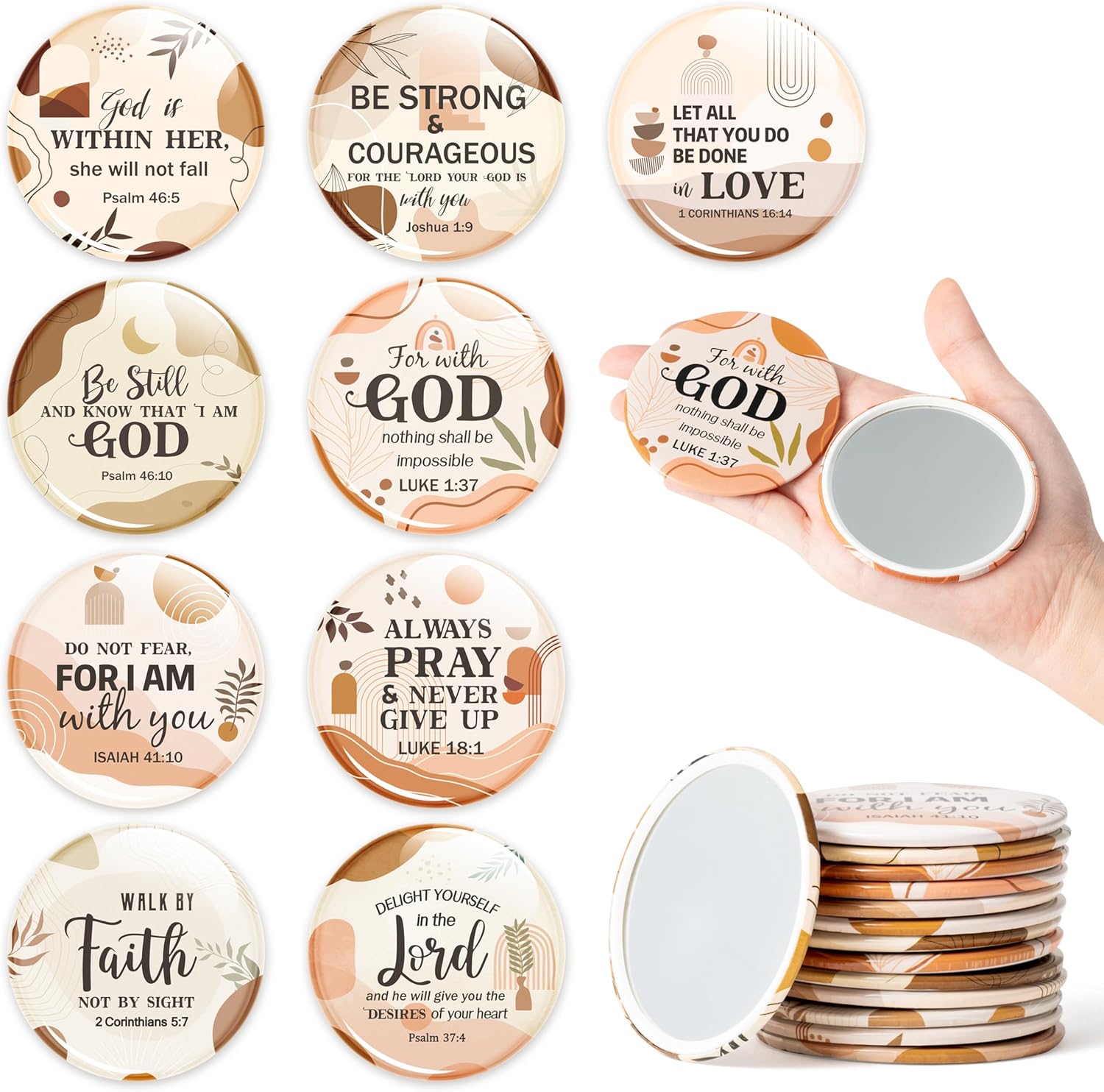 Y1tvei Bible Verse Compact Mirrors – 36Pcs Boho Christian Gifts Bulk Bible Verse Mini Compact Mirrors Inspirational Small Portable Round Pocket Makeup Mirror for Purse Church Party Favours for Women