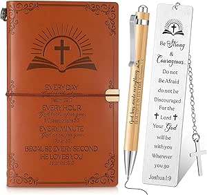 Tenare 3 Pcs Christian Gift Including Christian Notebook, Bible, Leather Journal, Bible Ballpoint Pen, Verse Bookmarks for Him, Christmas Inspirational Religious Her Gifts