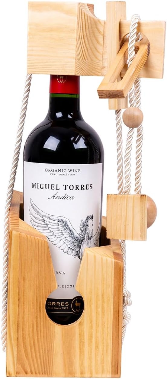 Vintage Marque Wooden Wine Puzzle Gift Set with Miguel Torres Andica Gran Reserva Carmenere 2022 75 cl Bottle – Brain Teaser Fun for Adults – Unique and Challenging Entertainment – Gift Idea